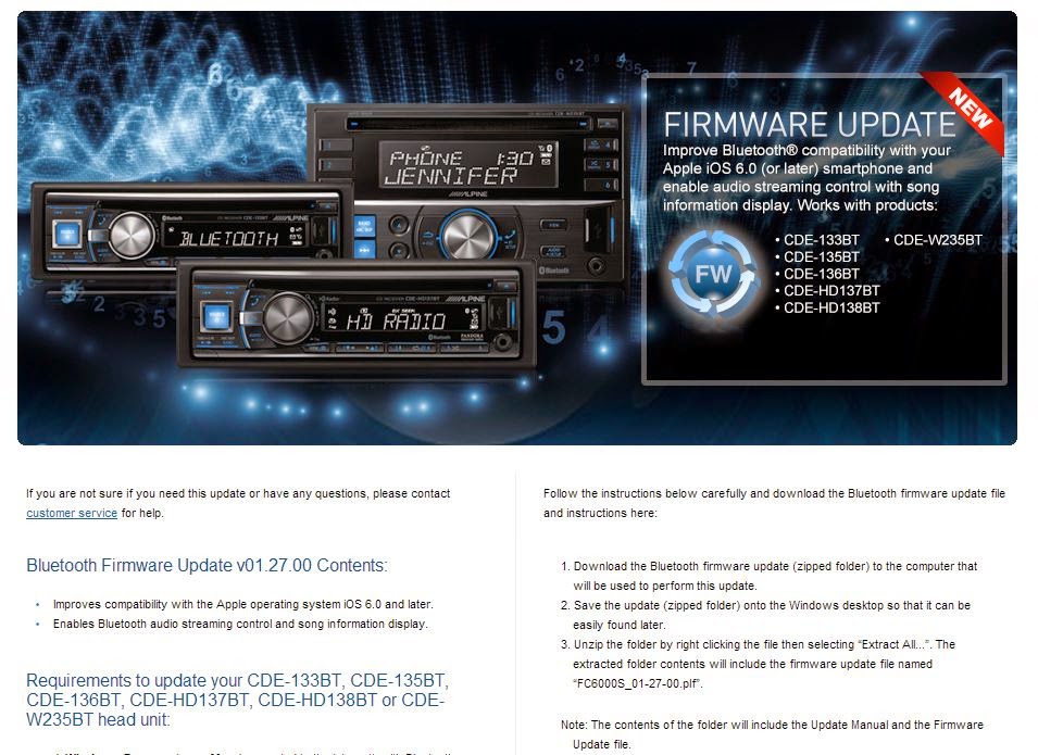 1 3 80807 münchen germany phone 089 32 42 640 alpine electronics of uk. Version 12700 firmware released 2013. Applies to cde 133bt cde 135bt cde 136bt cde hd137bt cde hd138bt and cde w235bt that have not been updated previously. This ensures that the unit is when you install this unit in your car do not remove the properly locked and will not accidentally come out from detachable front panel. 777 supertest road toronto ontario m3j 2m9 canada phone 1 800 alpine 1 1 800 257 4631 en fr es r thank you for purchasing this alpine product. View and download alpine cde 133bt owners manual online.
