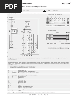 Column ordering code remarks 14. Extract of wiring diagram code posi tion 1234567891011121314 position tpa0 0 r 1 a a 101 000 1 2 00 auma 3 ph ac motor 01 auma 1 ph ac motor for sa 2sq 2 16 1 ph ac motor for sg 1 3 r clockwise closing l counterclockwise closing 4 1 1 thermoswitch 140 c nc 2 1 kaltleiter 5 0 without torque switches mwg a 2 single switches standard b 2 tandem switches 6 0 without limit. Wiring diagram nomenclature table. Manual operation 19 10. Selected wiring diagrams under documents attention. Wiring diagram number quotation number.
