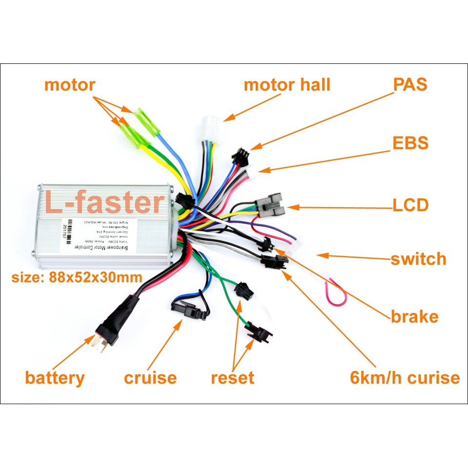 Wiring diagrams show the connections to the controller. Designed for 48 and 60 volt motors up to 1000 watts. This current limiting feature helps prevent controller and motor damage due to over current conditions. This controller has a 40 amp current limit rating so it can supply a large amount of extra power to the motor when needed. It endeavors to provide the products that you want offering the best bang for your buck. Most e bike controller will have these wires motor battery brakes throttle accelerator or pas pedal assist system some controllers have both types of wires some have one of them.