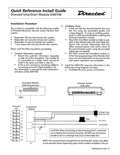 1 tach wire is an optional connection required on some remote starters which do not support a tach signal in d2d. Mount the smartstart module as high as possible in the vehicle with the engraved side facing upward for all devices. Refer to vehicle connections following the wiring diagram. Directed remote start systems with the optional security capability require interfacing with the door trigger circuit in your car. Mount with minimal obstructions that can affect communications and within reach. Directed electronics db3.