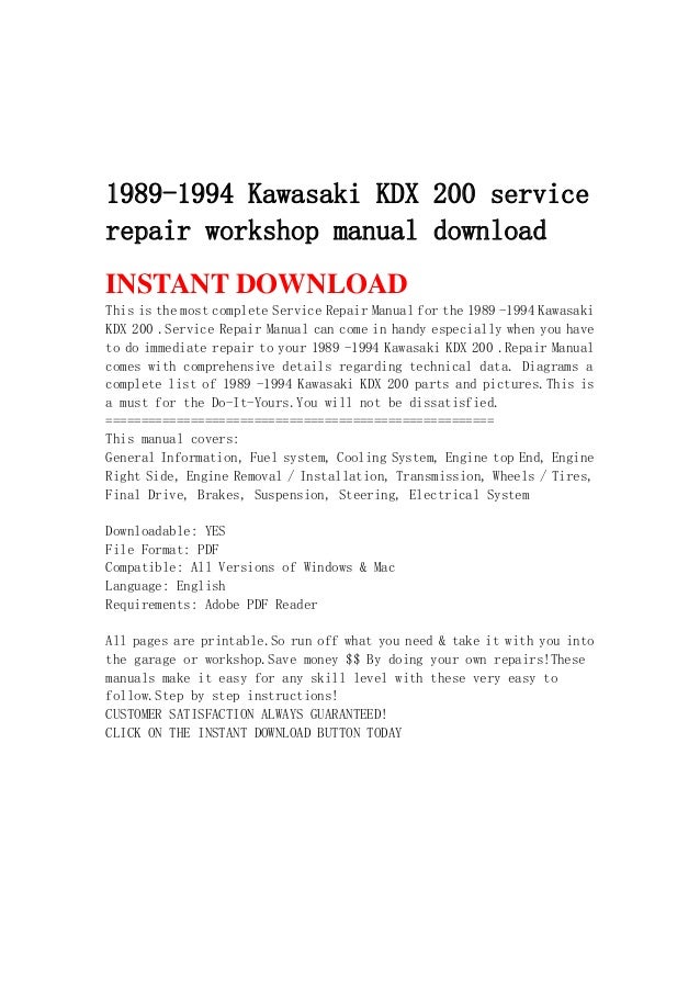 1989 1994 Kawasaki Kdx 200 Service Repair Workshop Manual