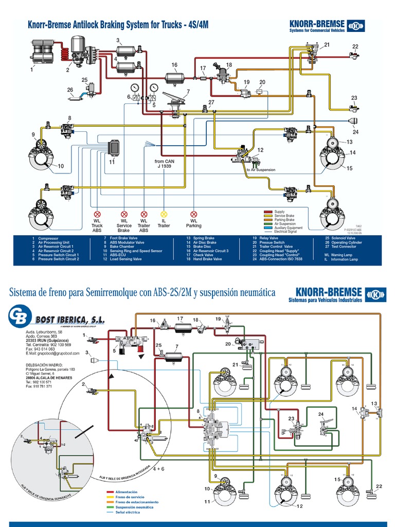 Knorr bremse ebs wiring diagram. Knorr bremse offers ebs and cfc for all vehicle types including trailers. Sample circuit diagram for a 6s3m braking system on a full trailer with knorr bremse tebs g21 parkshunt valve with front axle release valve. We can also supply knorr bremse wabco and haldex test equipment. Sample circuit diagram for a 2s2m braking system on a semi trailer with knorr bremse tebs g2 supply control knorr bremse tebs g2 ecu iso 7638 7pin iso 1185 24n tebs g2 078 fig. At the same time the excellent control sensitivity serves to increase braking. Knorr bremse ebs results in braking pressure not only building up faster but also simultaneously in all brake actuators.