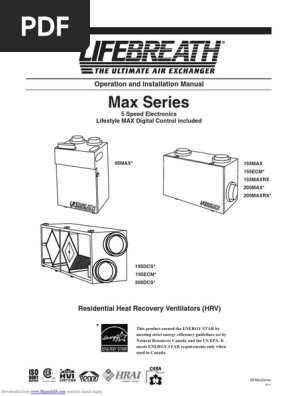 It reveals the parts of the circuit as streamlined shapes and also the power as well as signal connections in between the tools. A wiring diagram is a streamlined standard pictorial depiction of an electrical circuit. Lifebreath operation installation manual max series 500 erv. The hrv may produce some condensation during a defrost cycle. Your home was built to be energy efficient and lifebreaths hrv helps it stay that way. Make sure the hrv duct form an elbow inside the furnaceair handler ductwork.