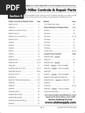 Mcdonnell miller s warranty is one 1 year from date of installation or two 2 years from the date of manufacture. 116 basic wiring mcdonnell miller 14. Failure to follow this warning could cause property damage personal injury or death. Mcdonnell miller service parts catalog parts list mm 701d. Models with 5 or 5 m switch models with 7b or 7b m switch approximate distance above cast line differential setting in. Pilot duty potentiometer slide wire.