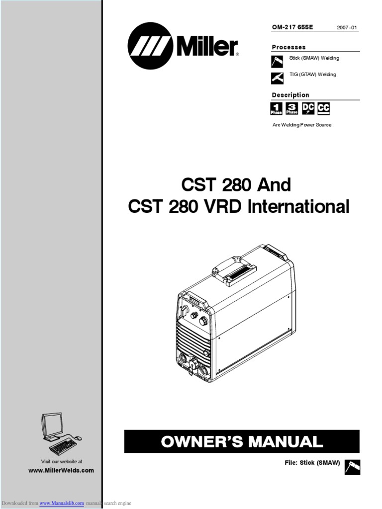 280 amps of output is ideal for stick electrodes up to 316 in and tig welding pipe and plate. 18 in 457 mm 125 150 amp adjust cst 280 miller electric mfg. To start viewing messages select the forum that you want to visit from the selection below. Arc welding power source with meter. Cst 280 durable yet lightweight sticktig welding power source designed for construction industry. 920 735 4125 cst 280 series sticktig welding power source quick specs cst 280 cst 280 with.