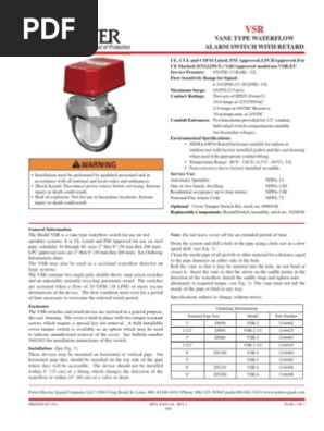 Vsr s eu vane tpe aterfo aar st t retar spt trea for sa ppe stock no. The model vsr is a vane type waterflow switch for use on wet sprinkler systems. Potter electric signal company llc st. Cover tamper switch kit stock no. Carefully place a screwdriver on the edge of the knockout and sharply apply a force sufficient to dislodge the knockout plug. Break out thin section of cover when wiring both switches from one.