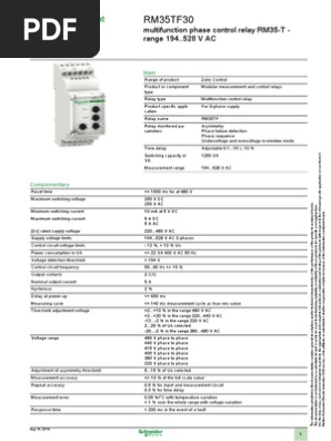 6 product data sheet technical description rm35tf30 function diagrams phase sequence control phase failure detection u measured 07 x nominal supply voltage and asymmetry detection control of overvoltage and undervoltage in window mode. 07 x nominal supply voltage and asymmetry detection control of overvoltage and undervoltage in window mode legend a asymmetry thershold. Conforming to iec 60947 1 and ul 508 solid cable without cable end awg. 6 product datasheet technical description rm35tf30 function diagrams phase sequence control phase failure detection u measured lt. Rm35tf30 multifunction phase control relay rm35 t range 194528 v ac. Response time on appearance of a fault.