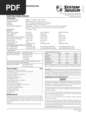 In canadian applications the rts151keya is intended to be located in the same room as the smoke detector and within 60 feet of the unit. Alarm response time 40 seconds max. A flush mount unit part no. 15 20 2 11 2 alarm signal 1 aux. 21 detector feature set utilizes plug in head part number sk photor sampling tubes install from front and rear compatible with existing accessories able to address detector per code switches on sensor head. Wiring diagram for rts151 to dh400acdc duct.