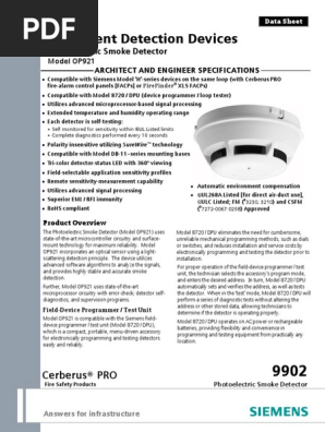 The visible led flashes green every 10 seconds to indicate communication with the facp and to notify model op921 has passed its self test. Note any limitations on the number of detectors and restric tions on the use of remote devices permitted for each circuit. Page 8 figure 5 wiring the fdbz492 pr fan supply source see figure 5 for terminal block com connections alarm relay figure 6 stand alone wiring the fdbz492 pr siemens industry inc. Wiring the fdbz492 fdbz492 r and fdbz492 hr should be connected as shown in figures 5 6 7 and 8.
