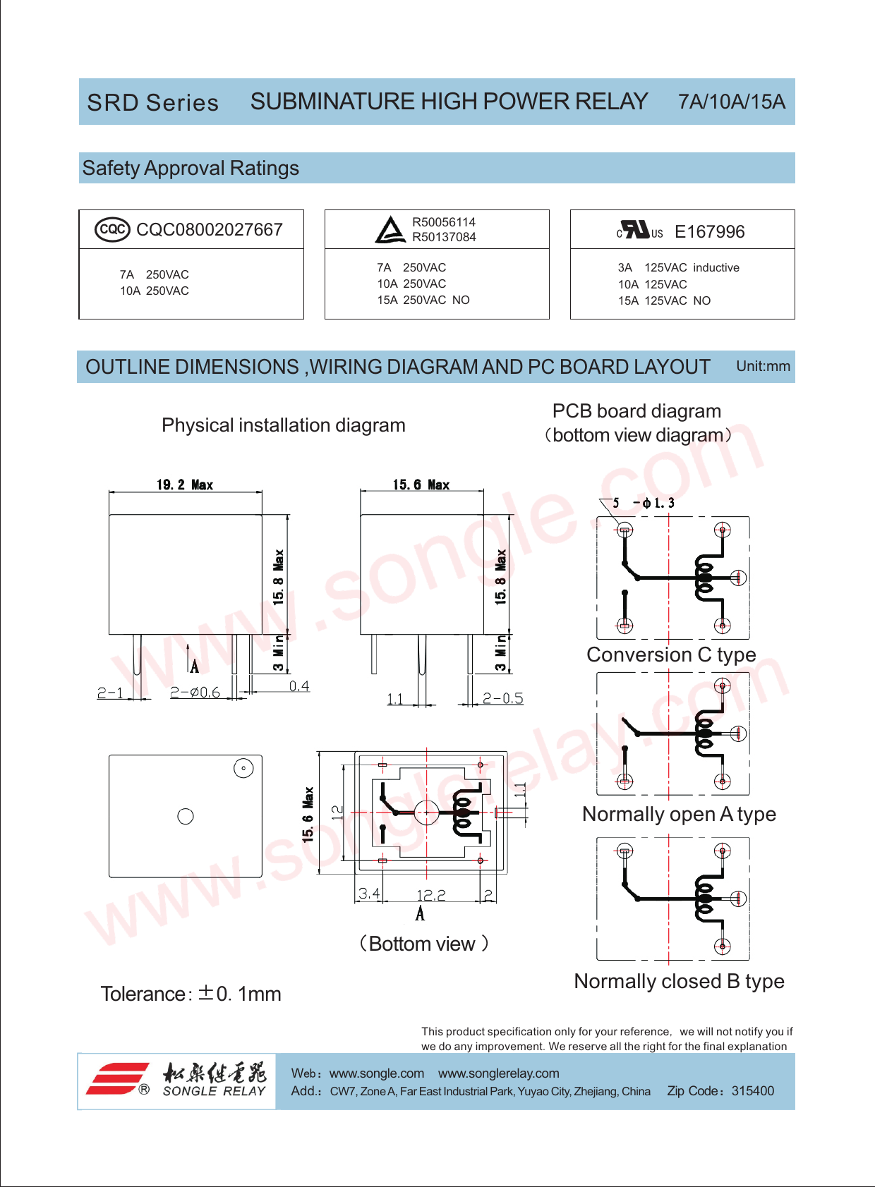 How to wire srd 05vdc sl c with arduino. This product has srd series 12v relay functions. Manufacturers of product is songle. I have a srsvdc sl relaywhat are those pin outs. Subminature high power relay srd series us c e167996 6 m 1 9 2 m a features x miniature volume pcb usage 158max 15 ax r50056114 r50137084 7a10a15a contact rating. I have here a single songle srd 05vdc sl c relay.