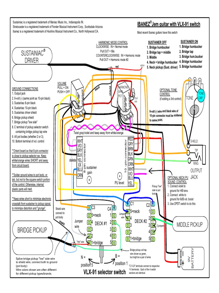 Hello all i poked around on here for a while looking for a wiring diagram for a sustainiac with an internal roland midi kit but couldnt find quite. Click here for a wire function diagram showing the function of each color coded wire. 04012019 04012019 2 comments on sustainiac wiring diagram make sure harmonicdrive pot or toggle switch is wired correctly. The sustainer circuit now amplifies the tiny driver pickup signal to a useable level. Two wires are provided to allow switching between single coil sc and humbucker hb sound. It is much more difficult than say replacing a pickup or volume control.