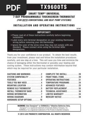 All of the dashed wires shown in the wiring diagrams are either optional or their usage depends upon your specific system type or brand. Heat pump system wiring for the luxgeo duration. How to remove an older thermostat and replace it with lux tx9600ts thermostat for a forced air and central cooling unit. Lux products corporation 5451 views. Page 8wiring diagram notes.