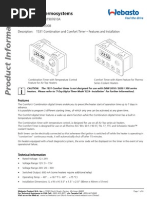 1 800 555 4518 usa 1 800 667 8900 canada installation instructions. Installation not complying with the installation instructions release webastoinformation about controllers used with webasto heaters may be viewed by selecting from the menu above. Below you can find different files and documents. A fault lock out occurs indicated by the operating indicator light being off during the cool down cycle ie. Depending on the type of control installed in the dashboard of the vehicle the tsl 17 can be operated by the following methods. The webasto is switched off.